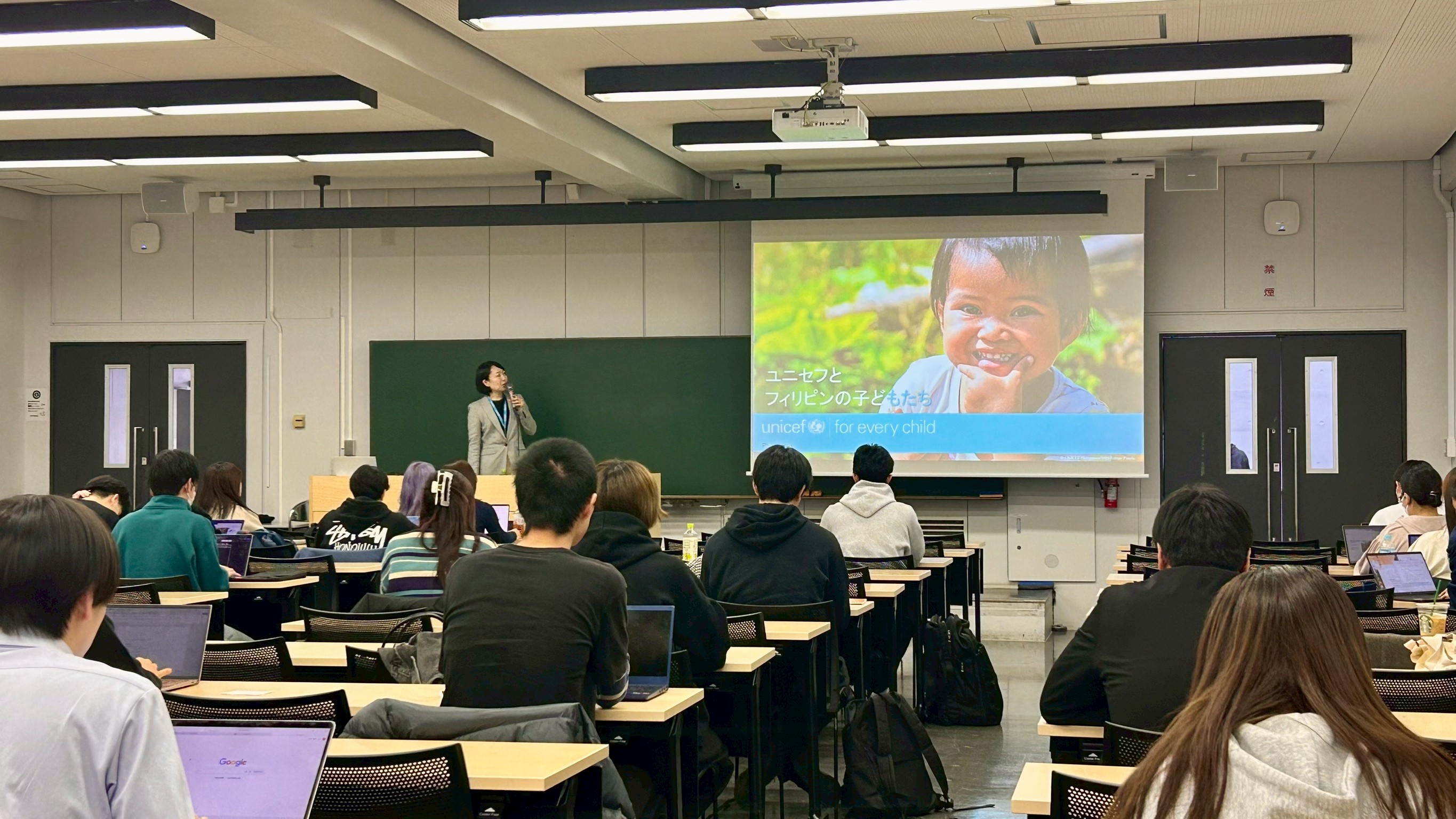 当日は、学内から約80名の学生が参加し、講演とワークショップを通じて、世界の子どもたちが直面する課題について理解を深めました。